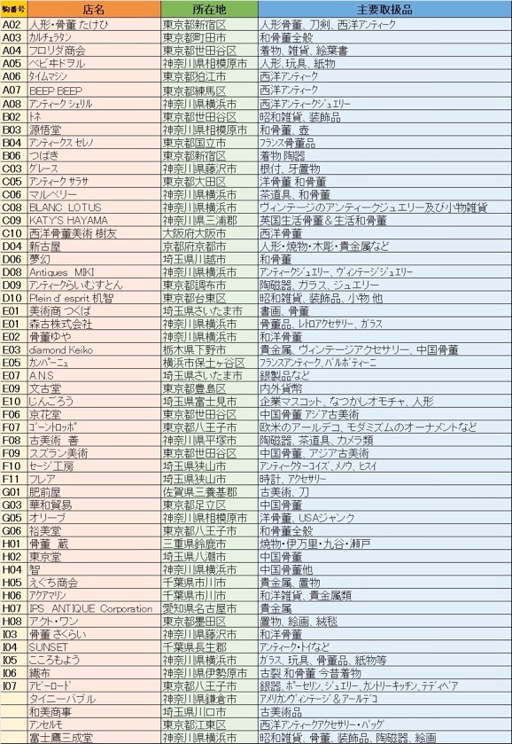 ◉ 出店者リスト (第46回開催時 2025年10月12/13日)